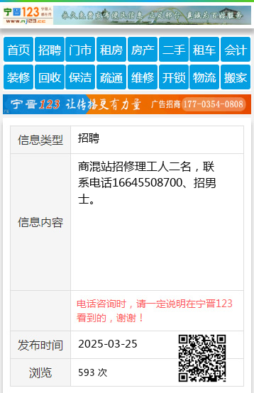 商混站招修理工人二名,联系电话16645508700、招男士。