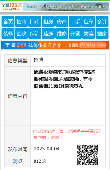 | 防骗提醒: | 望奎信息网(www.wangkui.cc)提醒您:手工活、网络兼职、刷单,都是骗子!凡以各种名义收取费用的都是骗子!找工作是往兜里挣钱,让你往外掏钱的都是骗子!异地招聘请提高警惕,谨防诈骗! |