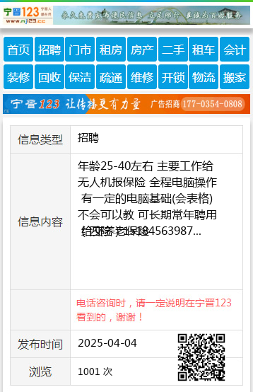 年龄25-40左右 主要工作给无人机报保险 全程电脑操作 有一定的电脑基础(会表格)不会可以教 可长期常年聘用 给交养老保险