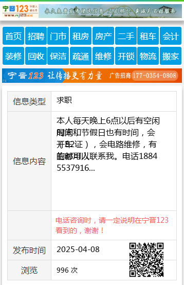 (B2证),会电路维修,有临时用人