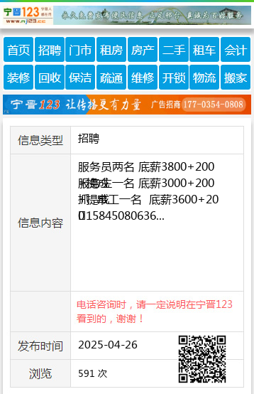 服务员两名 底薪3800+200+提成