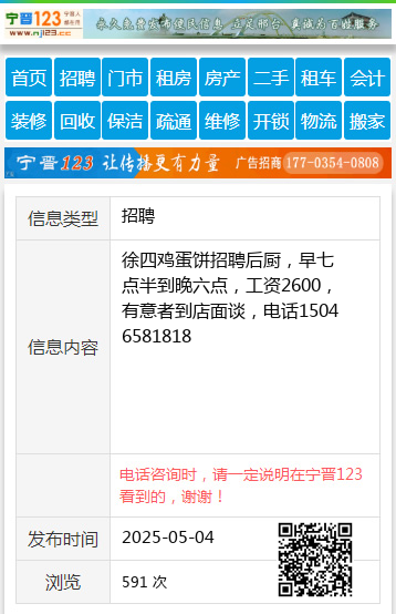 徐四鸡蛋饼招聘后厨,早七点半到晚六点,工资2600,有意者到店面谈,电话15046581818 【电话咨询时,请一定说明在望奎信息网看到的,谢谢!】 |