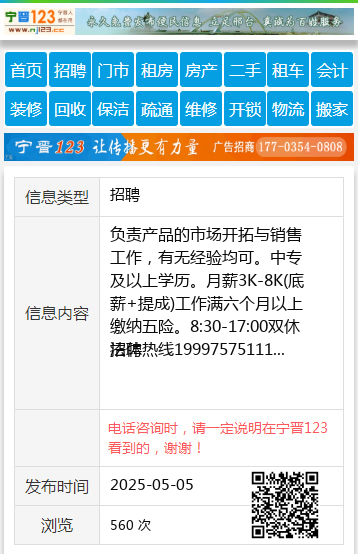 招聘热线19997575111 【电话咨询时,请一定说明在望奎信息网看到的,谢谢!】 |