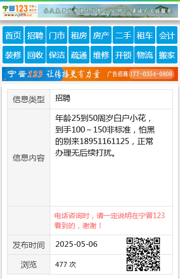 免责声明:本栏目信息由网友自行发布,望奎信息网不承担任何责任!提高警惕,谨防诈骗!做推广、做信息置顶!请加望奎信息网客服微信:wangku0455