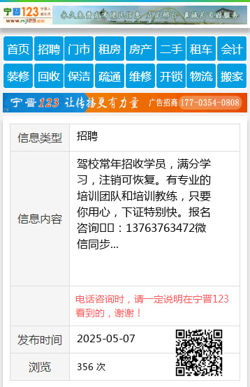 驾校常年招收学员,满分学习,注销可恢复。有专业的培训团队和培训教练,只要你用心,下证特别快。报名咨询☎️:13763763472微信同步 【电话咨询时,请一定说明在望奎信息网看到的,谢谢!】 |