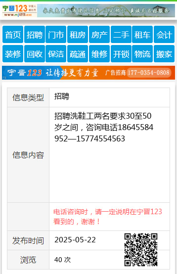 招聘洗鞋工两名要求30至50岁之间,咨询电话18645584952—15774554563