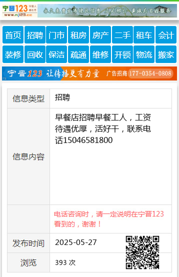 早餐店招聘早餐工人,工资待遇优厚,活好干,联系电话15046581800