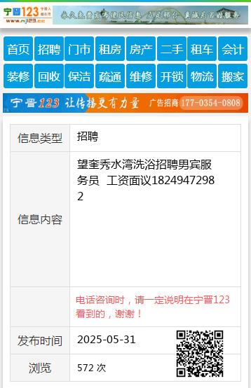 望奎秀水湾洗浴招聘男宾服务员 工资面议18249472982