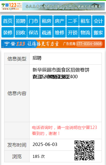 新华辰超市面包组招做货女工 不会可教 早7.00一4.30 月工资2400元 卷饼7:00_ 4:30月工资2400元 ☎️15804551981