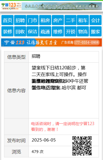 望奎线下日结120起步,第二天在家线上可操作。操作简单,时间自由。 薪资待遇120~230 下班就开支 工作时间早9晚16 中午还管饭 工作地点:望奎 哈尔滨 都可 微信电话同步