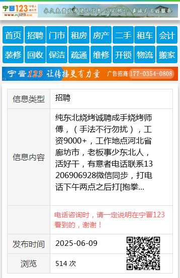 纯东北烧烤诚聘成手烧烤师傅,(手法不行勿扰),工资9000+,工作地点河北省廊坊市,老板事少东北人,活好干,有意者电话联系13206906928微信同步,打电话下午两点之后打[抱拳 【电话咨询时,请一定说明在望奎信息网看到的,谢谢!】 |