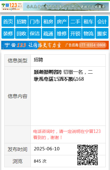 巧面小厨北二店招聘,服务员一名,联系电话☎18245538628
