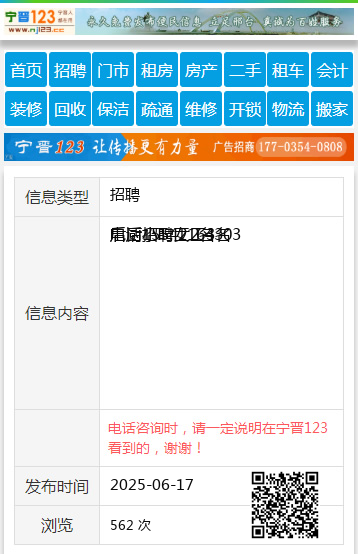 聚桥缘米线。招聘30~50岁的杂工。18944551183