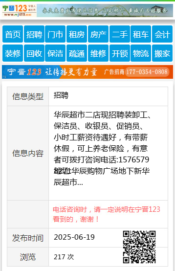 华辰超市二店现招聘装卸工、保洁员、收银员、促销员、小时工薪资待遇好,有带薪休假,可上养老保险,有意者可拨打咨询电话:15765798271