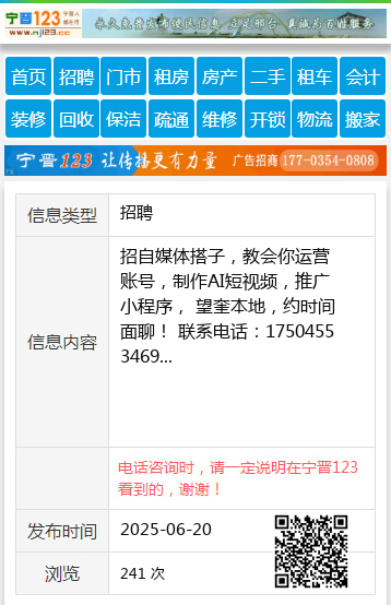 招自媒体搭子,教会你运营账号,制作AI短视频,推广小程序, 望奎本地,约时间面聊! 联系电话:17504553469