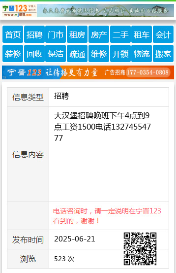 服务生 男,勤快,能熬夜,电话18666552111