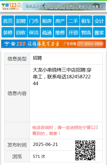 大龙小串烧烤三中店招聘:穿串工,联系电话18245872244