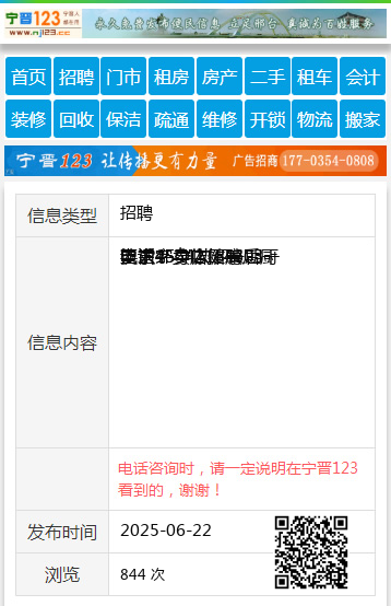 望奎外卖店招聘后厨 要求45岁以下长期干 认识字身体健康 电话15542164303
