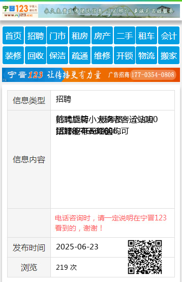| 防骗提醒: | 望奎信息网(www.wangkui.cc)提醒您:手工活、网络兼职、刷单,都是骗子!凡以各种名义收取费用的都是骗子!找工作是往兜里挣钱,让你往外掏钱的都是骗子!异地招聘请提高警惕,谨防诈骗! |