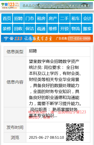 岗位要求: 全日制本科及以上学历,有财会类、财经类等相关专业毕业背景,具备良好的数据处理能力,全面的财务专业知识,具备良好的职业道德和沟通能力,需要不断学习提升能力。 岗位职责: 熟悉掌握财务基本专业知识,能熟练操作各类办公软件及财务软件。 做好数字资产统计工作。 数字资产数据的整理与复核工作。 落实好数网机构各项工作。 薪资待遇: 8小时双休制,工资3000-6000元,学习期满交五险。联系电话:13089971175 【电话咨询时,请一定说明在望奎信息网看到的,谢谢!】 |