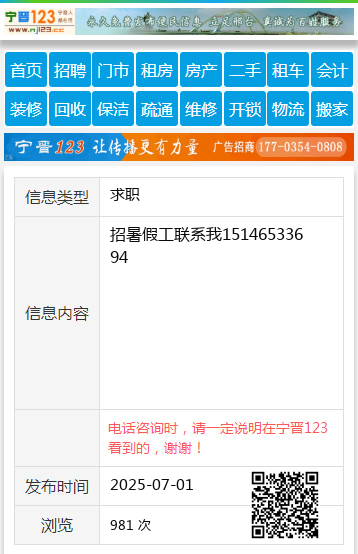 招暑假工联系我15146533694