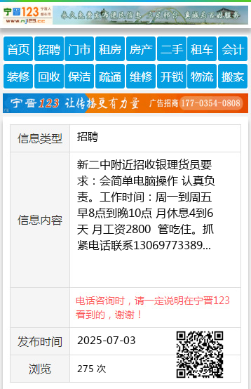 | 防骗提醒: | 望奎信息网(www.wangkui.cc)提醒您:手工活、网络兼职、刷单,都是骗子!凡以各种名义收取费用的都是骗子!找工作是往兜里挣钱,让你往外掏钱的都是骗子!异地招聘请提高警惕,谨防诈骗! |