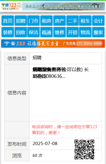 | 防骗提醒: | 望奎信息网(www.wangkui.cc)提醒您:手工活、网络兼职、刷单,都是骗子!凡以各种名义收取费用的都是骗子!找工作是往兜里挣钱,让你往外掏钱的都是骗子!异地招聘请提高警惕,谨防诈骗! |