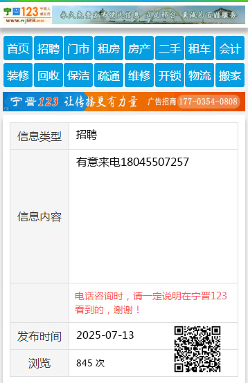 招聘: 快递公司招聘操作工人 女工5名 男工3名 工作地点,南六街嘉汇物流园 工作时间,早7:00晚5:00 快递公司招聘客服 工资2500-3500,咨询16645628000
