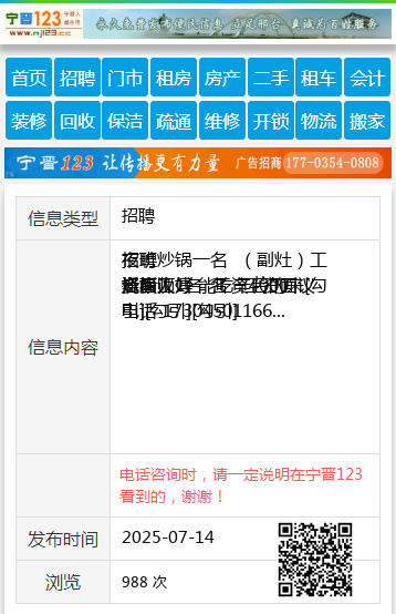 电话 17304501166 【电话咨询时,请一定说明在望奎信息网看到的,谢谢!】 |
