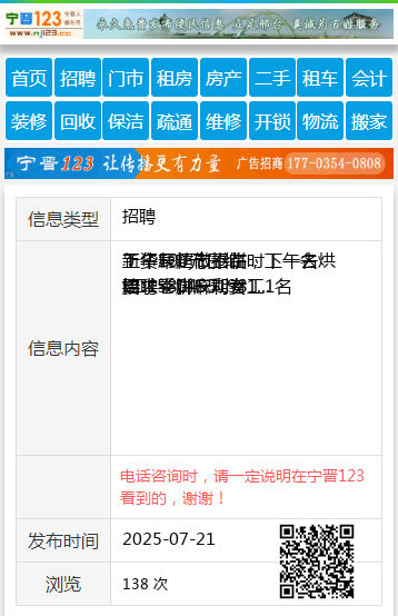 | 防骗提醒: | 望奎信息网(www.wangkui.cc)提醒您:手工活、网络兼职、刷单,都是骗子!凡以各种名义收取费用的都是骗子!找工作是往兜里挣钱,让你往外掏钱的都是骗子!异地招聘请提高警惕,谨防诈骗! |