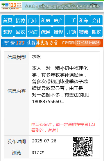 本人一对一精补初中物理化学,有多年教学补课经验,曾多次带初四毕业季孩子成绩优异效果显著,由于是一对一名额不多,有想法的☎️18088755660 【电话咨询时,请一定说明在望奎信息网看到的,谢谢!】 |