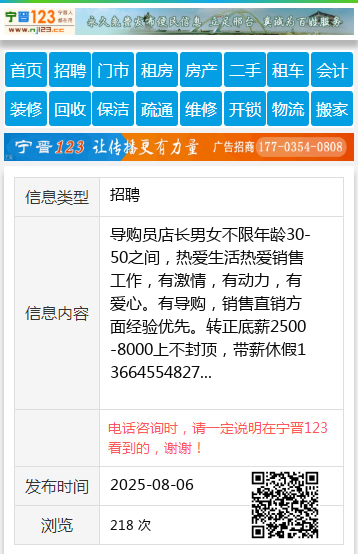 导购员店长男女不限年龄30-50之间,热爱生活热爱销售工作,有激情,有动力,有爱心。有导购,销售直销方面经验优先。转正底薪2500-8000上不封顶,带薪休假13664554827 【电话咨询时,请一定说明在望奎信息网看到的,谢谢!】 |