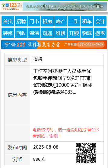 | 防骗提醒: | 望奎信息网(www.wangkui.cc)提醒您:手工活、网络兼职、刷单,都是骗子!凡以各种名义收取费用的都是骗子!找工作是往兜里挣钱,让你往外掏钱的都是骗子!异地招聘请提高警惕,谨防诈骗! |