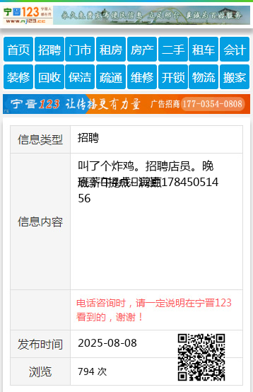 叫了个炸鸡。招聘店员。晚班下午4点~12点 底薪➕提成➕满勤17845051456