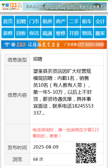 | 防骗提醒: | 望奎信息网(www.wangkui.cc)提醒您:手工活、网络兼职、刷单,都是骗子!凡以各种名义收取费用的都是骗子!找工作是往兜里挣钱,让你往外掏钱的都是骗子!异地招聘请提高警惕,谨防诈骗! |