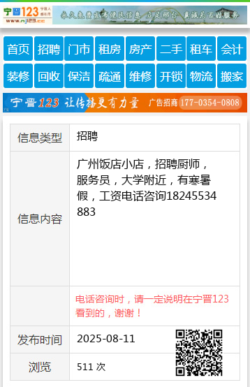 广州饭店小店,招聘厨师,服务员,大学附近,有寒暑假,工资电话咨询18245534883