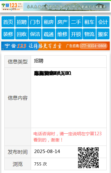 | 防骗提醒: | 望奎信息网(www.wangkui.cc)提醒您:手工活、网络兼职、刷单,都是骗子!凡以各种名义收取费用的都是骗子!找工作是往兜里挣钱,让你往外掏钱的都是骗子!异地招聘请提高警惕,谨防诈骗! |