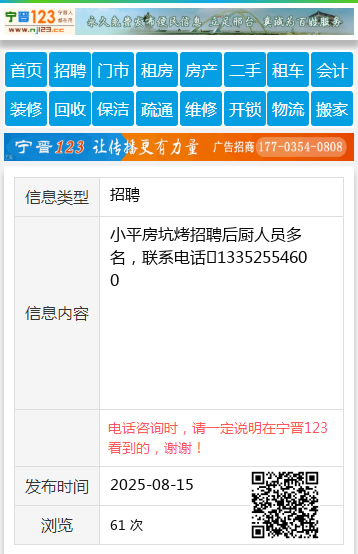 小平房坑烤招聘后厨人员多名,联系电话☎13352554600