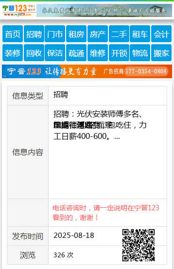 招聘:光伏安装师傅多名、电焊师傅2名面意 地点:河北 工期:年底 报销往返路费,包吃住,力工日薪400-600。
