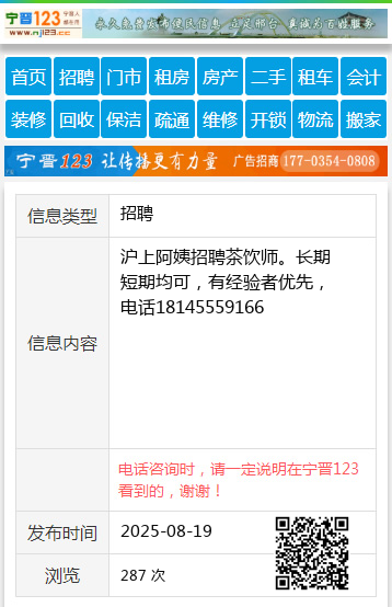沪上阿姨招聘茶饮师。长期短期均可,有经验者优先,电话18145559166