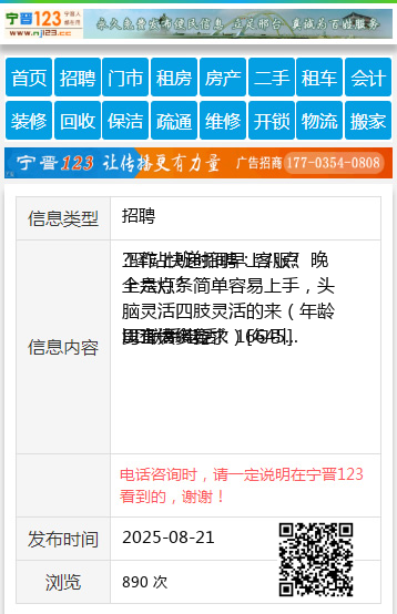 | 防骗提醒: | 望奎信息网(www.wangkui.cc)提醒您:手工活、网络兼职、刷单,都是骗子!凡以各种名义收取费用的都是骗子!找工作是往兜里挣钱,让你往外掏钱的都是骗子!异地招聘请提高警惕,谨防诈骗! |