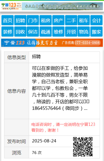 可以在家做的手工,给参加漫展的做假发造型,简单易学,自己当老板,兼职全职都可以学,包教包会,一单几十到几百不等,男女不限,陪读的,开店的都可以☎️18645576464(微同步) 【电话咨询时,请一定说明在望奎信息网看到的,谢谢!】 |