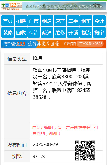 巧面小厨北二店招聘,服务员一名,底薪3800+200满勤奖+4个半天带薪休假,厨师一名,联系电话☎18245538628