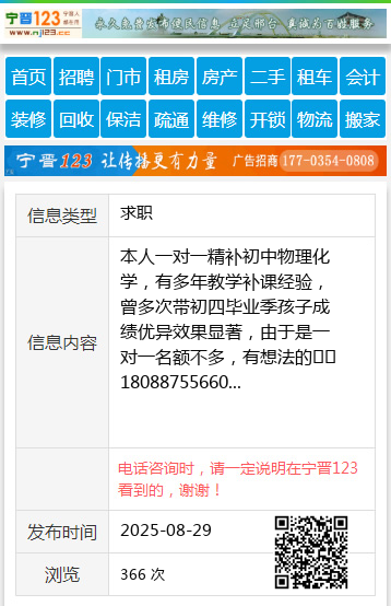 本人一对一精补初中物理化学,有多年教学补课经验,曾多次带初四毕业季孩子成绩优异效果显著,由于是一对一名额不多,有想法的☎️18088755660 【电话咨询时,请一定说明在望奎信息网看到的,谢谢!】 |