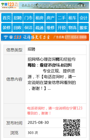 岗位:专业平台线上咨询 专业正规、提供资源,不 【电话咨询时,请一定说明在望奎信息网看到的,谢谢!】 |