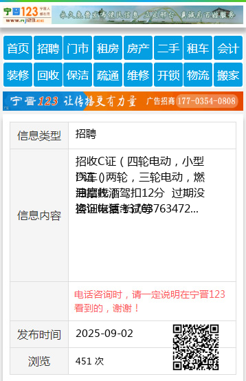 招收C证(四轮电动,小型汽车)