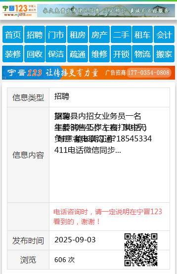 望奎县内招女业务员一名 主要销售工作(接打电话)