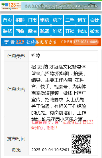 | 防骗提醒: | 望奎信息网(www.wangkui.cc)提醒您:手工活、网络兼职、刷单,都是骗子!凡以各种名义收取费用的都是骗子!找工作是往兜里挣钱,让你往外掏钱的都是骗子!异地招聘请提高警惕,谨防诈骗! |