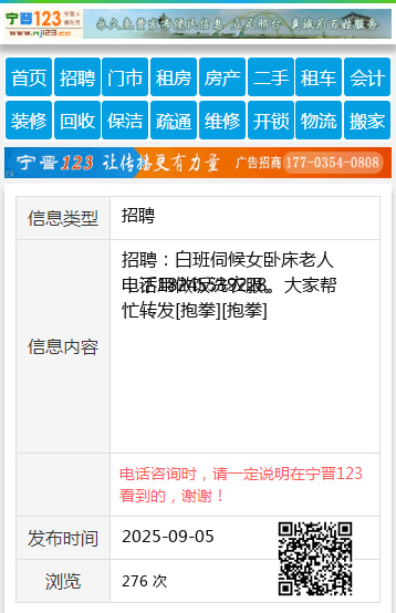 招聘:白班伺候女卧床老人,不用做饭洗衣服。 电话18245539228。大家帮忙转发[抱拳][抱拳]