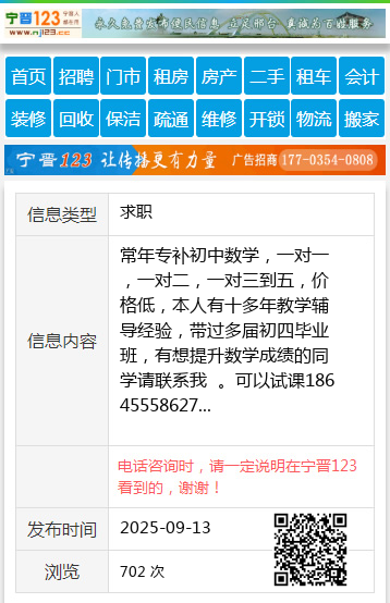 常年专补初中数学,一对一,一对二,一对三到五,价格低,本人有十多年教学辅导经验,带过多届初四毕业班,有想提升数学成绩的同学请联系我 。可以试课18645558627